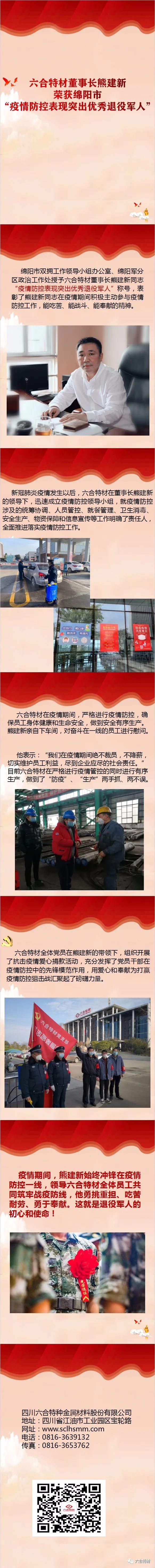betway88西汉姆联董事长熊建新荣获绵阳市“疫情防控表现突出优秀退役军人”