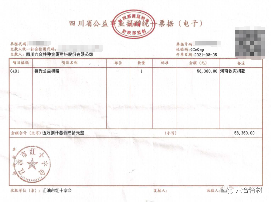 8月5日,betway88西汉姆联积极贯彻落实习近平总书记对防汛救灾工作作出的重要指示精神,通过江油市红十字会向河南灾区捐款合计58360元,支持河南水灾经济救援和灾后恢复重建工作。