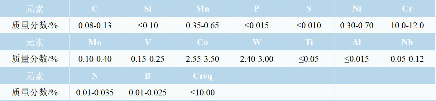 1Cr11Co3W3NiMoVNbNB is a martensitic heat-resistant steel and mainly applied in bolts, nuts, blades and other parts at high-temperature section of ultra-supercritical units. This material features the high yield strength, toughness, sufficient endurance strength, long-term structural stability and oxidation resistance.