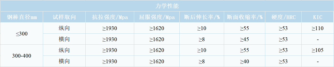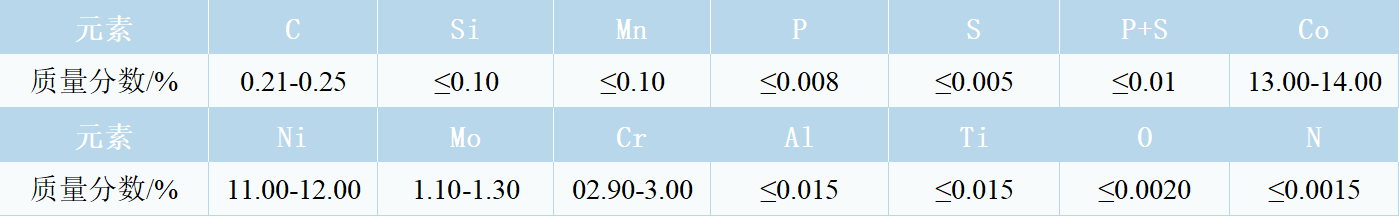 A-100 corresponds to domestic grade 23Co14Ni12Cr3MoE, a new high alloy Co-Ni secondary hardened ultra-high-strength steel, using C, Cr, Mo as strengthening elements, with high fracture toughness (KIC≥115 MPa√m) and high tensile strength (Rm≥1930 MPa), and excellent fatigue resistance and crack propagation resistance.