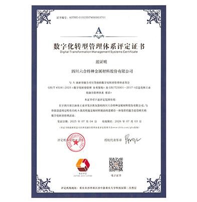 两化融合管理体系评定证书