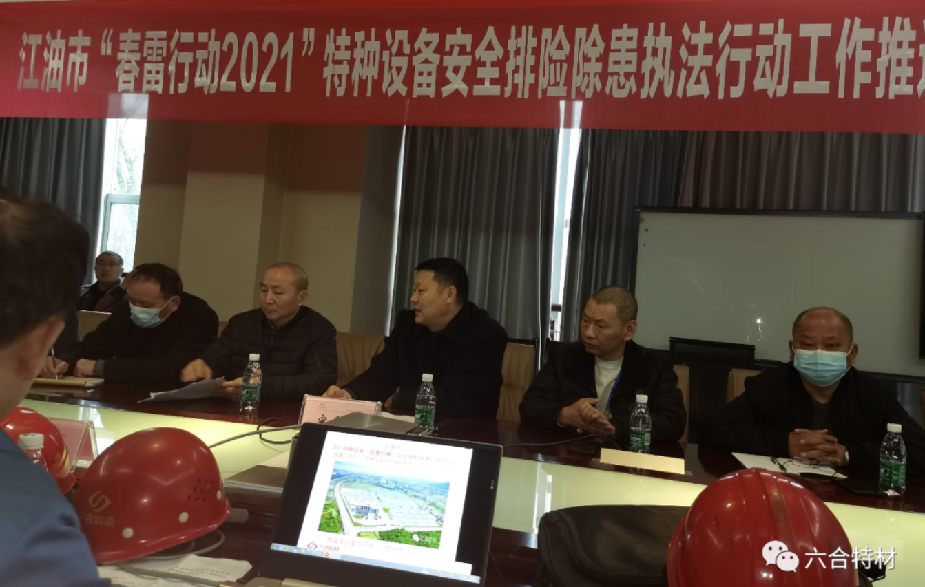 2021年3月20日,为有效提升江油市辖区重点单位、重点行业、重点场所的特种设备使用管理水平,加大特种设备隐患排查和整治力度,确保特种设备使用安全,江油市市场监督管理局在betway88西汉姆联公司组织召开了江油市2021特种设备(起重机械)安全排险除患经验交流现场会暨江油市“春雷行动2021”特种设备安全排险除患执法行动工作推进会活动。